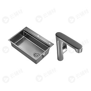 恒洁厨房操作台多功能水槽洗菜盆304不锈钢75*43cm枪色